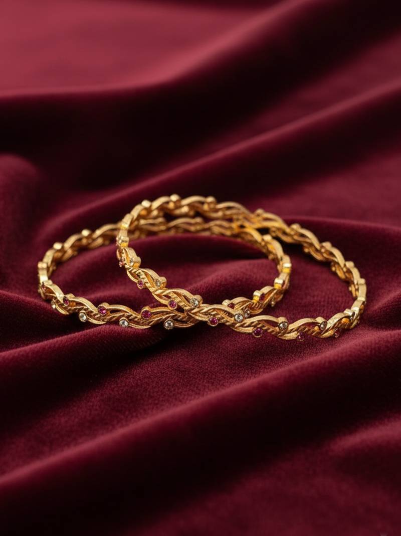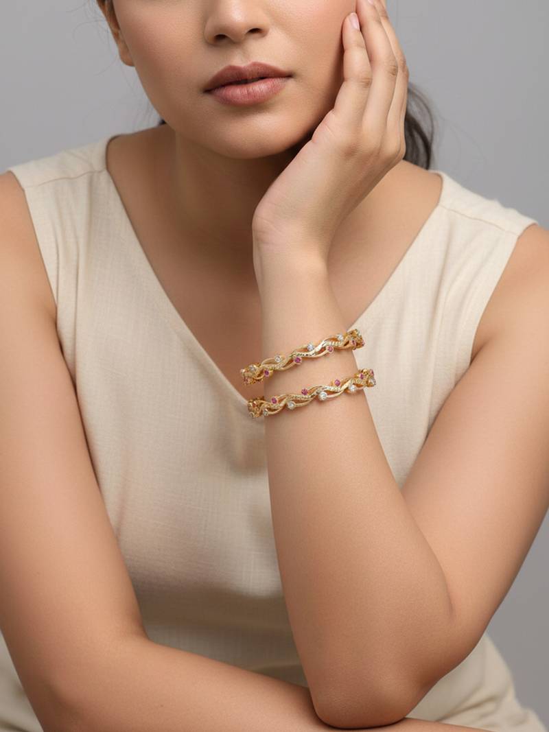 | Product Description | Women Set Of 2 Gold Plated Cz Stone Bangle These Women’s Gold Tone Designer Bangles Feature Intricate Textured Detailing Enhanced With Sparkling Crystal Embellishments. The Beautifully Aligned Stones Create A Shimmering Centerpiece That Adds Brilliance And Sophistication To The Overall Design. Crafted To Offer A Rich And Festive Appeal, These Bangles Are Perfect For Weddings, Celebrations, And Special Occasions. Wear Them Together For A Glamorous Statement Or Pair Them With Other Traditional Jewelry For A Complete, Graceful Look. |