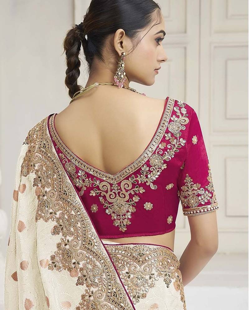 | • | Blouse | : | Color- Rani Pink / Fabric- Silk Blend |