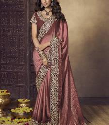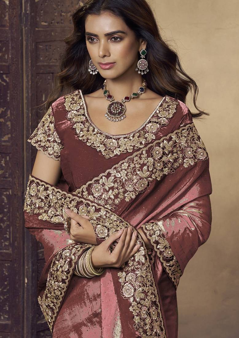 Dark peach embroidered fendi satin saree with satin blouse fabric || premium sarees || premium fabrics