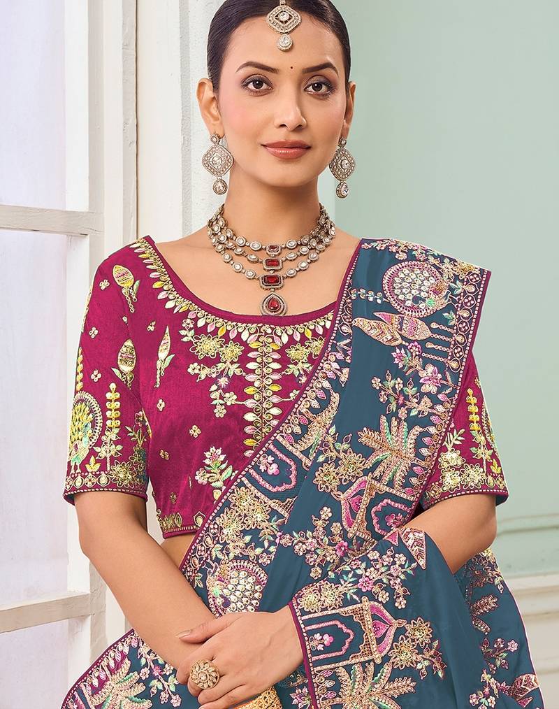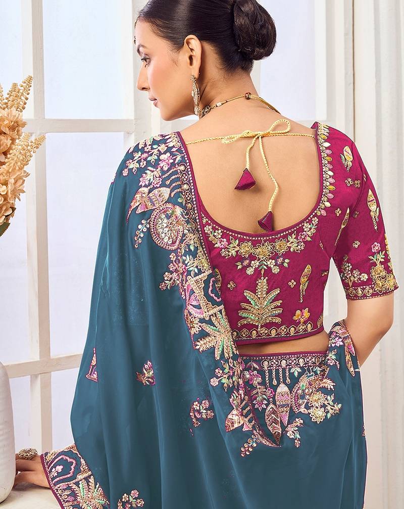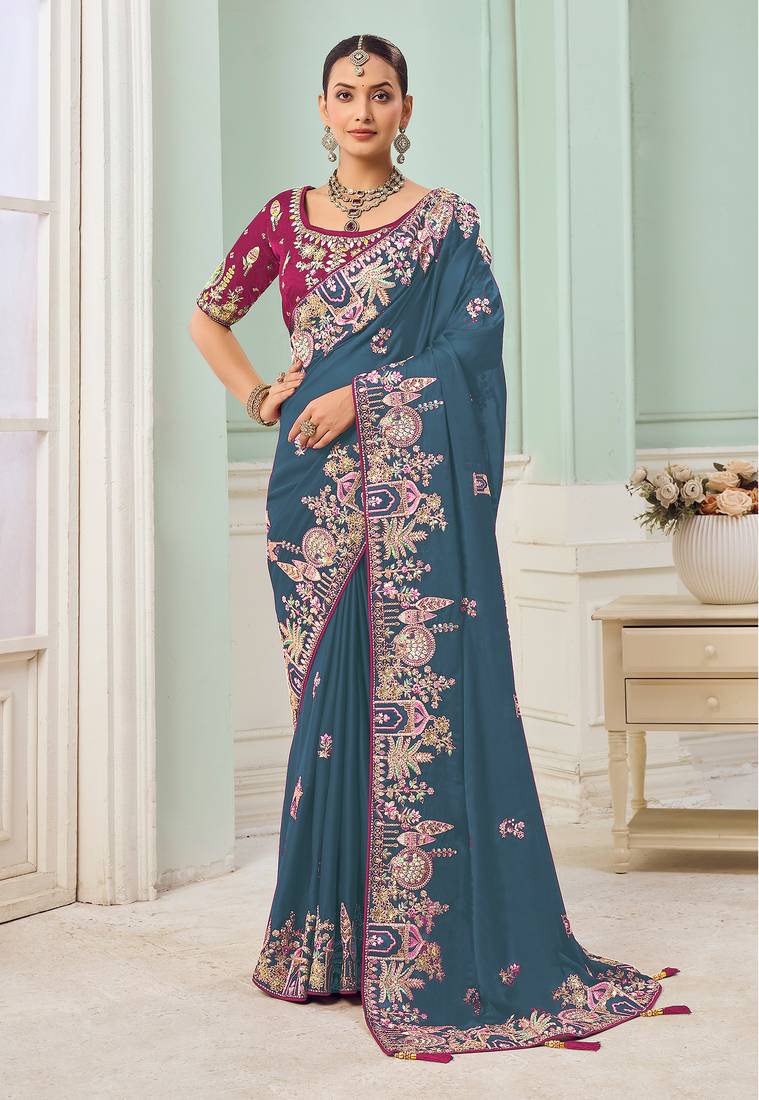 | • | Saree | : | Color- Dark Turquoise / Fabric- Satin |