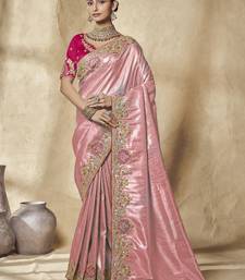 Gajri pink embroidered jacquard silk blend wedding saree with blouse fabric