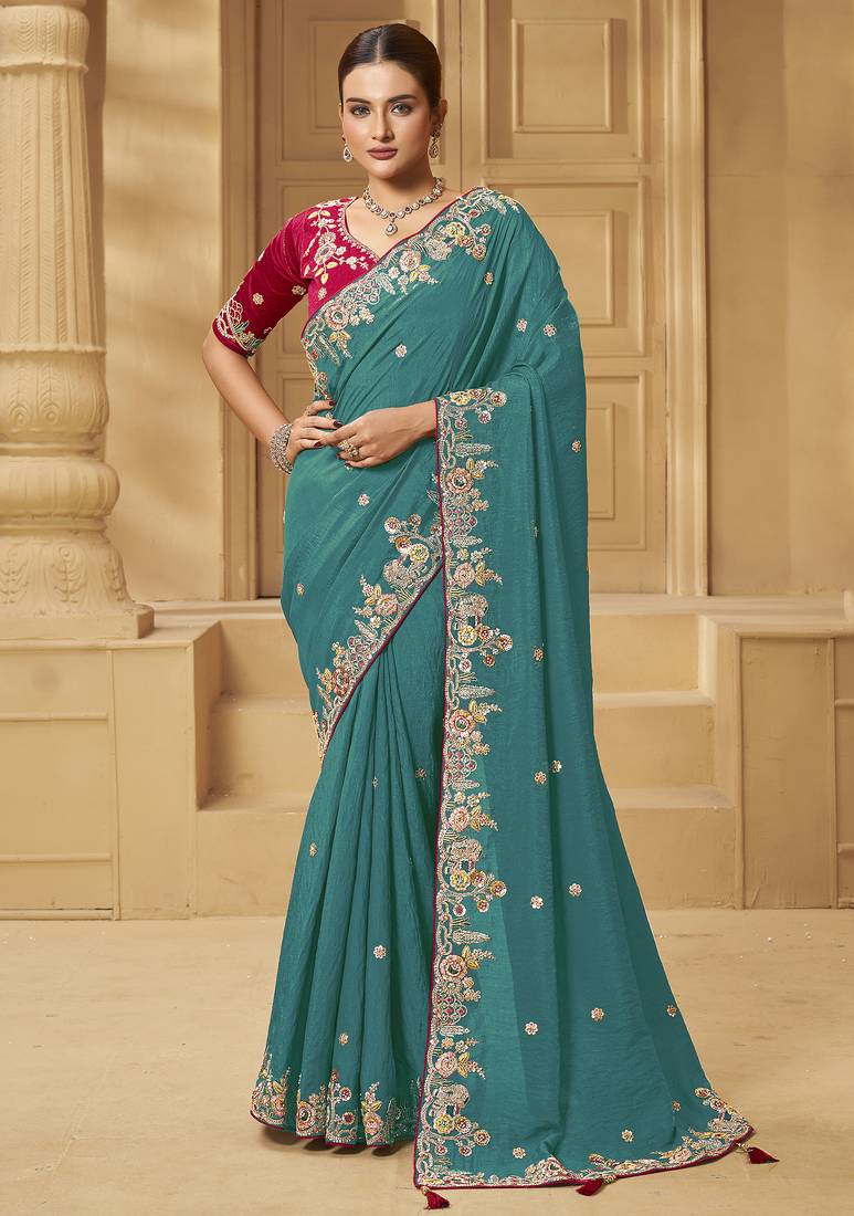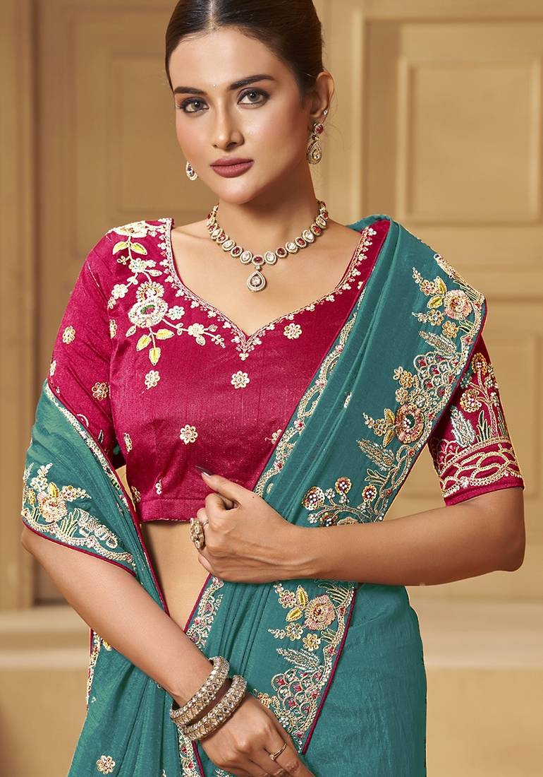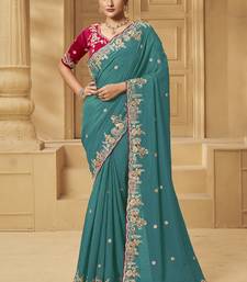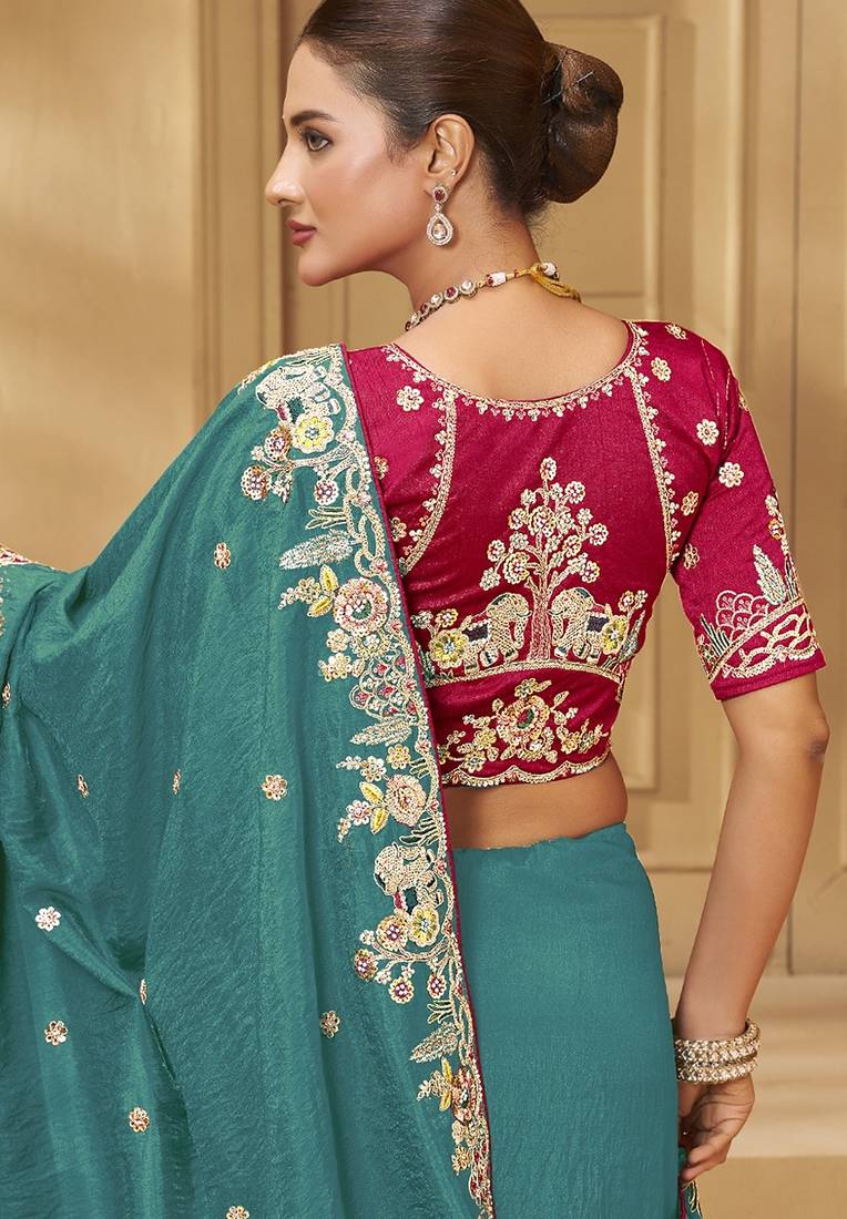 Green party wear fancy silk saree with designer blouse fabric