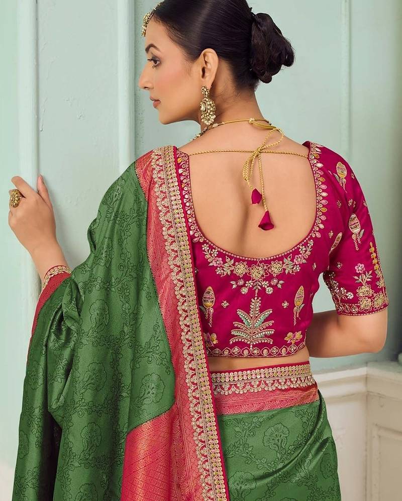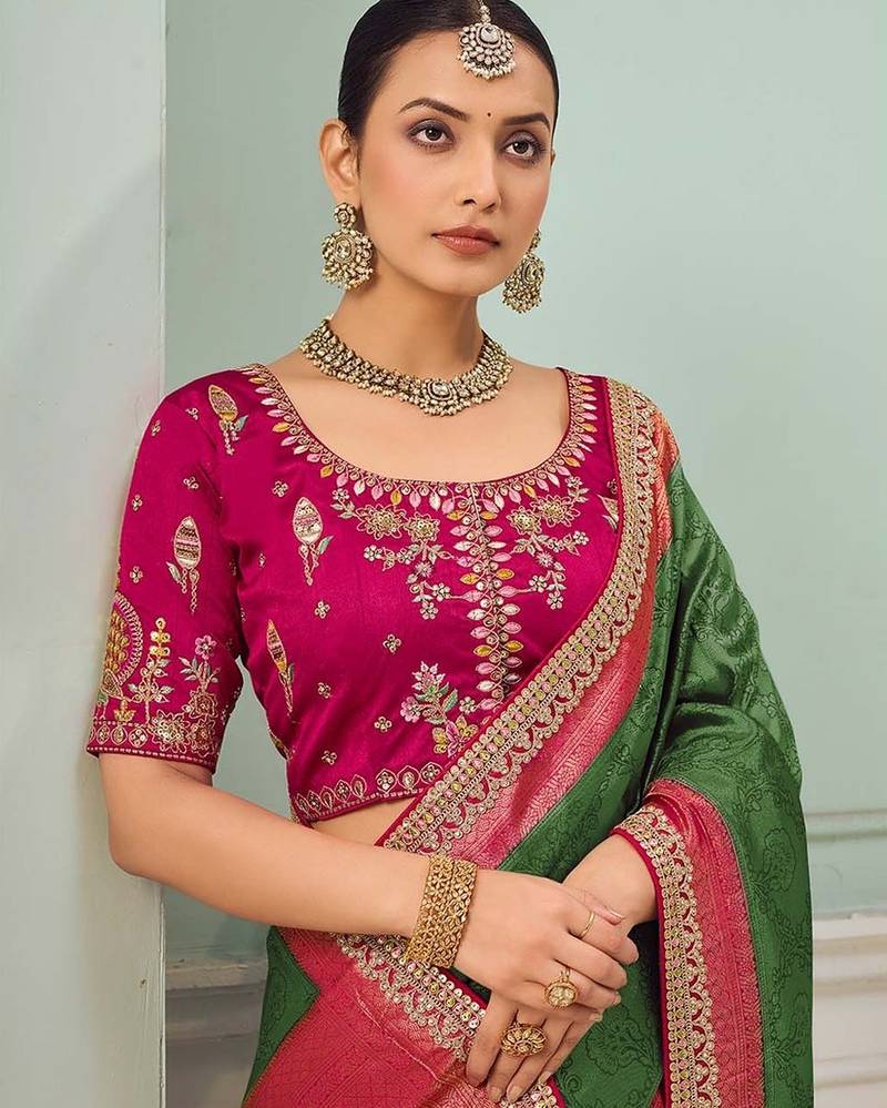| Product Name | Green Party Wear Jecquard Saree With Designer Blouse Fabric | |