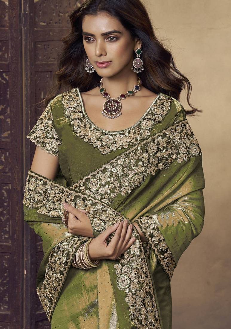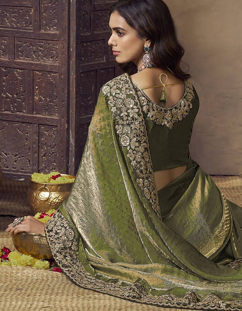 Mehendi green embroidered fendi satin saree with satin blouse fabric || premium sarees || premium fabrics