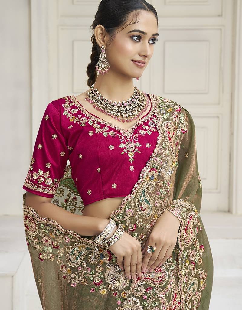 | Product Name | Olive Party Wear Fendi Saree With Designer Blouse Fabric | |