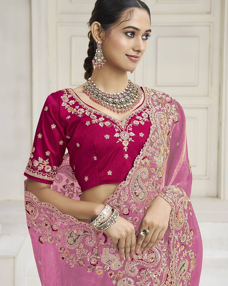 | Product Name | Pink Party Wear Fendi Saree With Designer Blouse Fabric | |