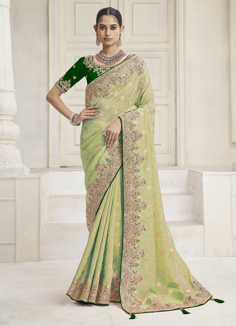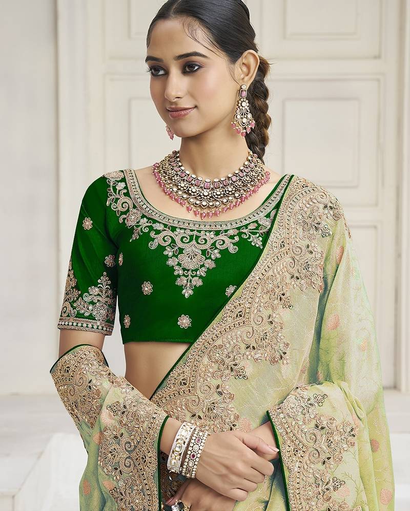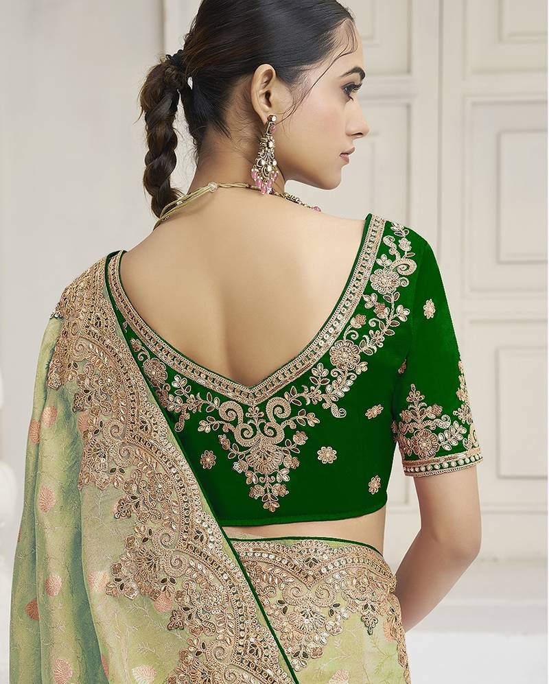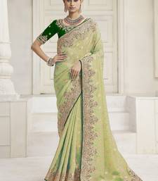 Pista green party wear tissue vicose saree with designer blouse fabric