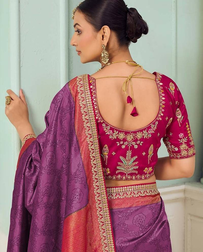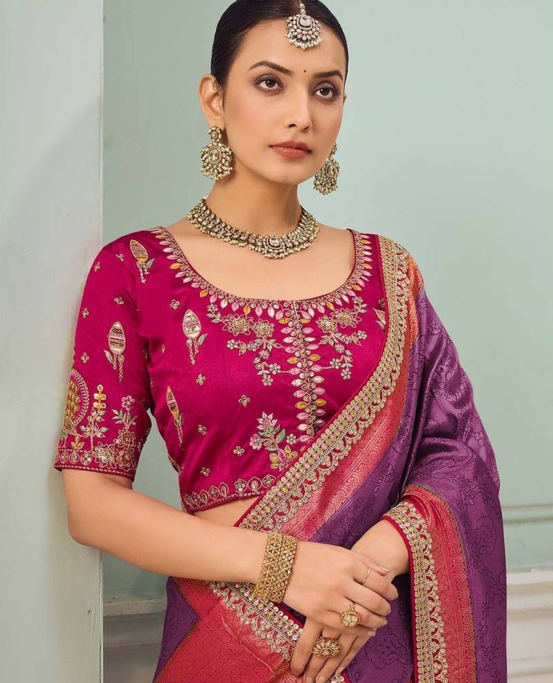 Purple party wear jecquard saree with designer blouse fabric