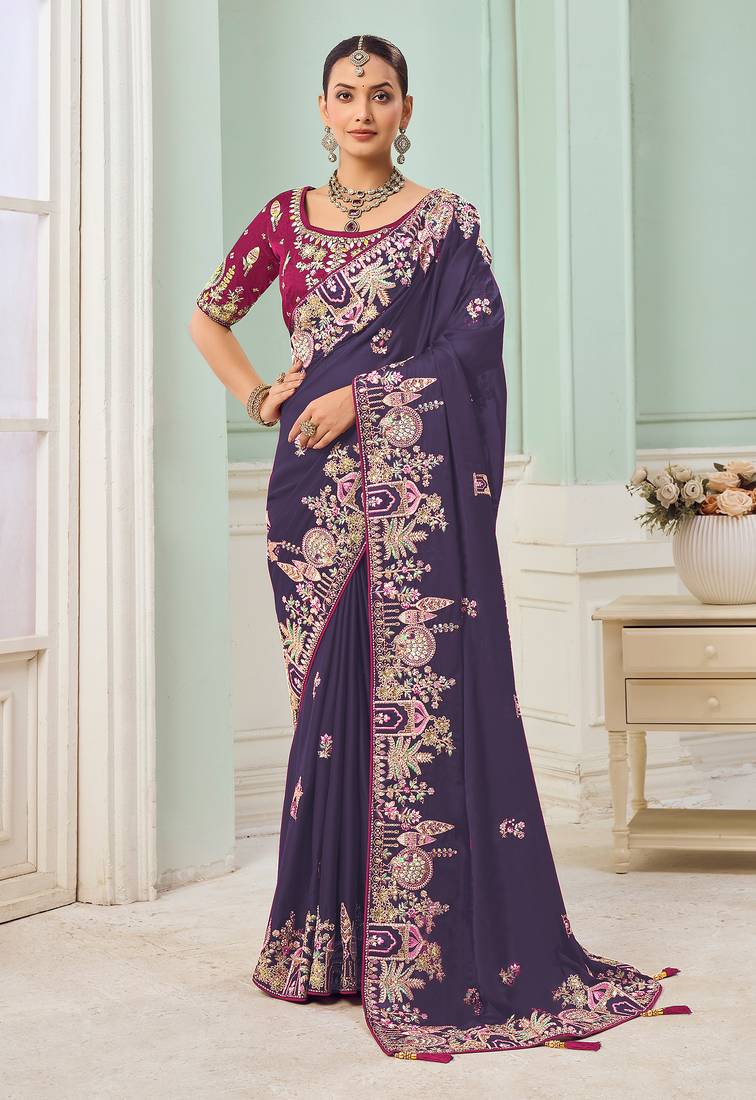| • | Saree | : | Color- Purple / Fabric- Satin |