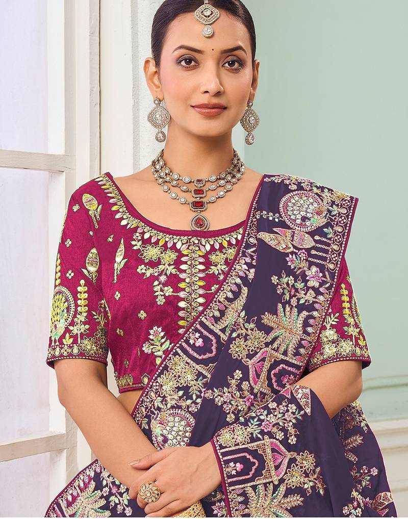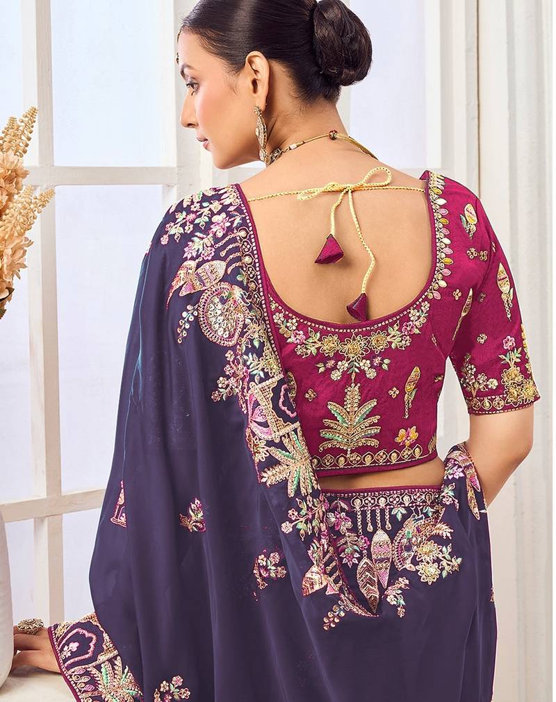 | Product Name | Purple Party Wear Satin Saree With Designer Blouse Fabric | |