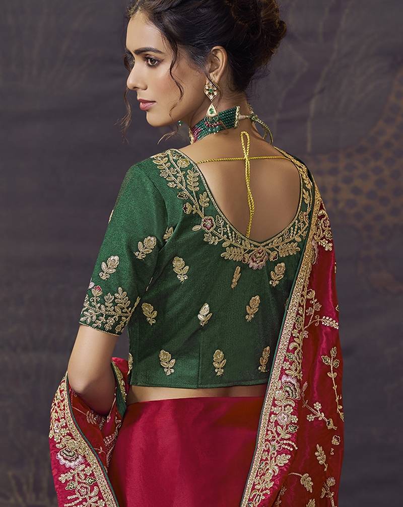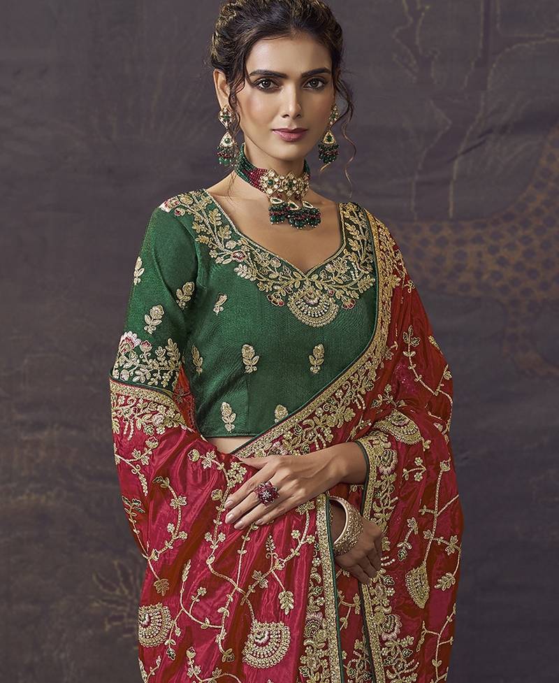 | • | Saree | : | Color- Rani Pink / Fabric- Organza |