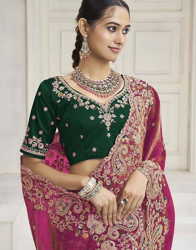 | Product Name | Rani Pink Party Wear Fendi Saree With Designer Blouse Fabric | |