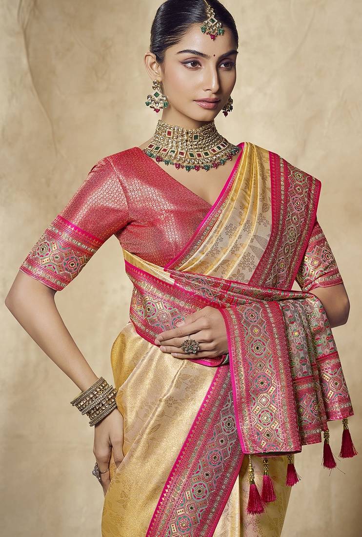 | • | Saree | : | Color- Yellow / Fabric- Jacquard |