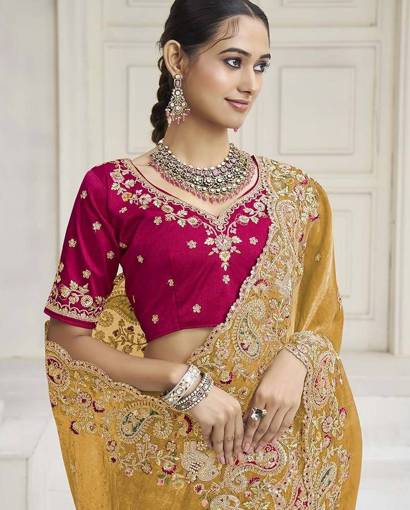 | Product Name | Yellow Party Wear Fendi Saree With Designer Blouse Fabric | |