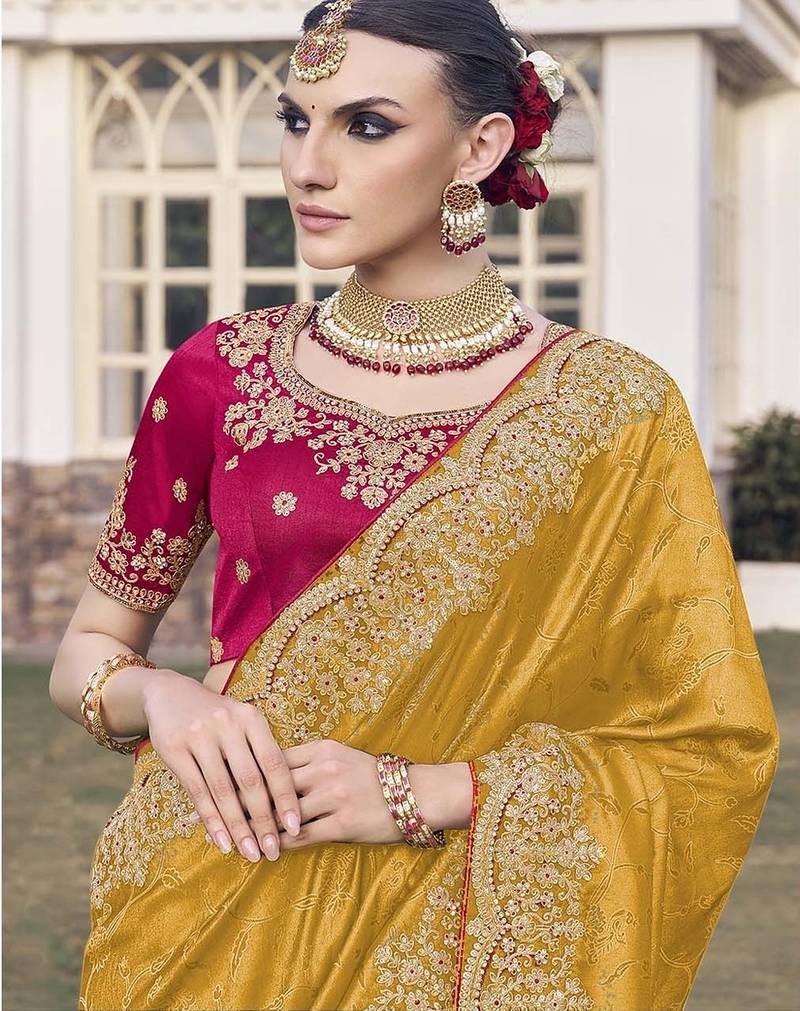 | Product Name | Yellow Party Wear Jecquard Saree With Designer Blouse Fabric | |