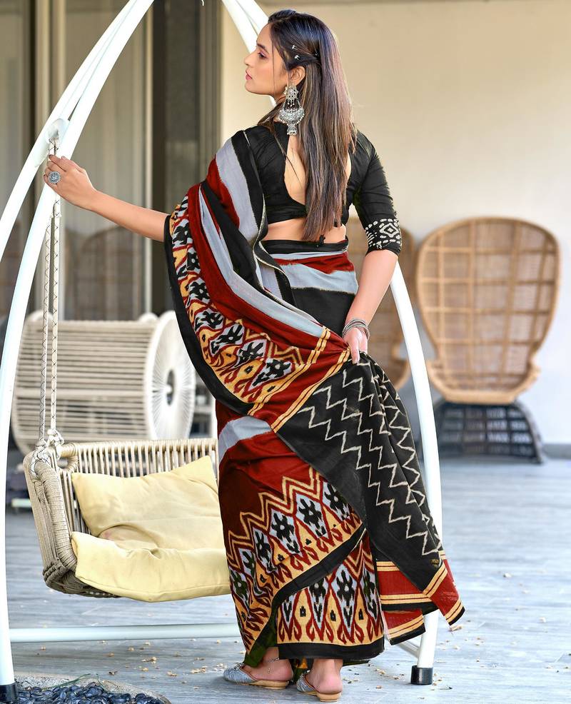 Product Description | Black Mulmul Cotton Printed Fancy Saree With Blouse |