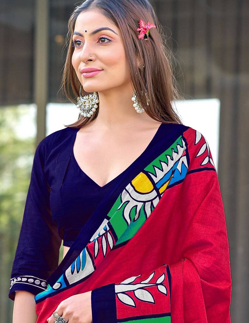 Product Description | Maroon Soft Cotton Printed Fancy Saree With Blouse |