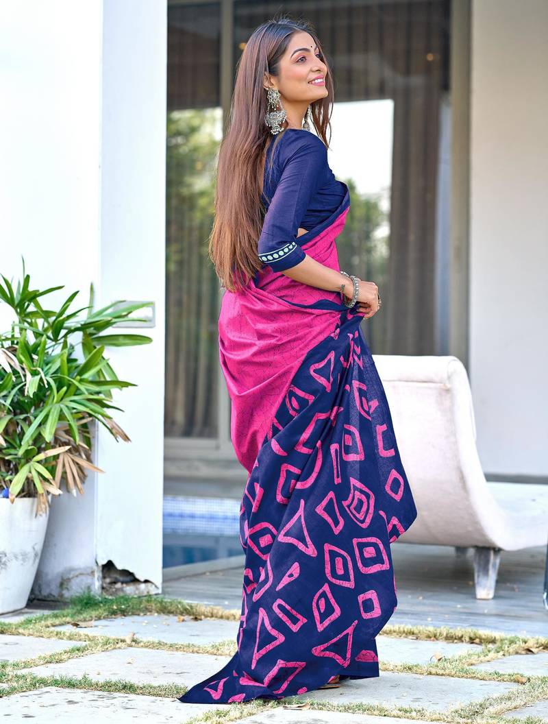 Product Description | Pink Soft Cotton Printed Fancy Saree With Blouse |