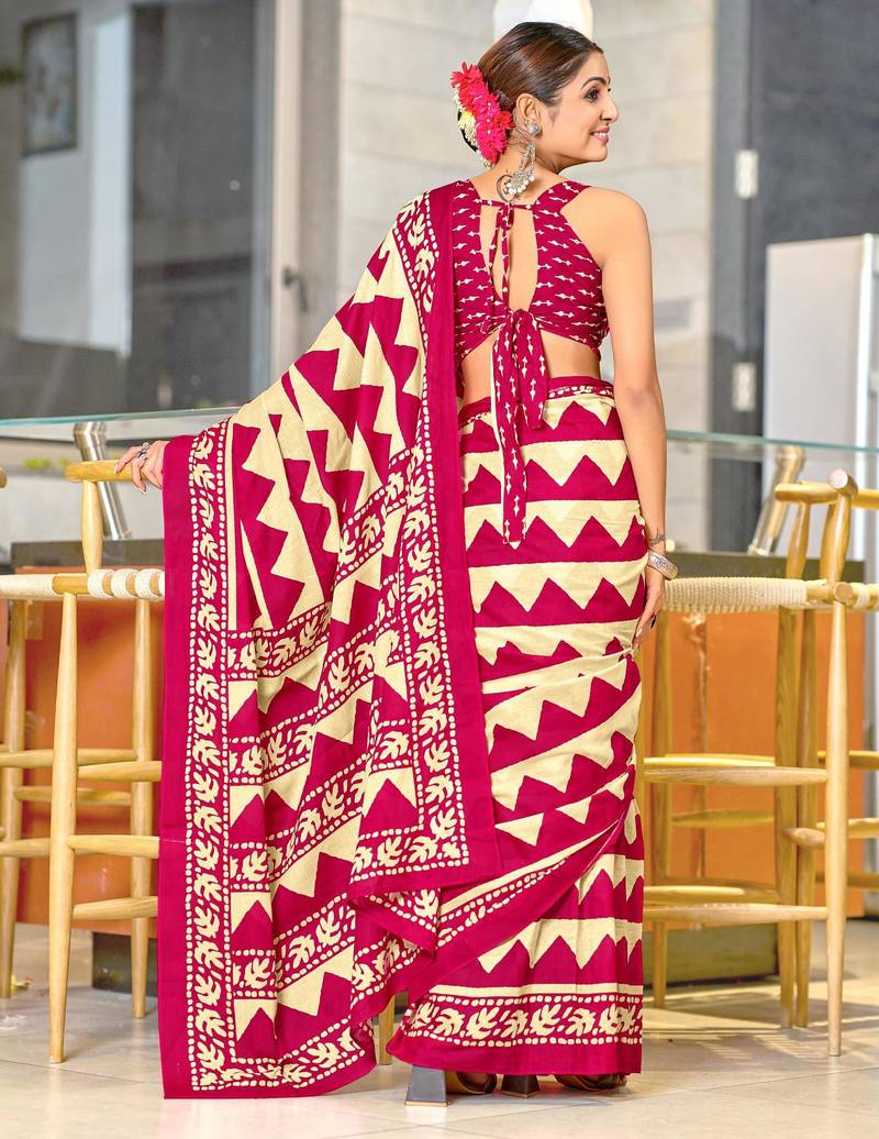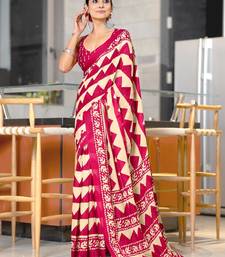 Product Description | Pink Soft Cotton Printed Fancy Saree With Blouse |
