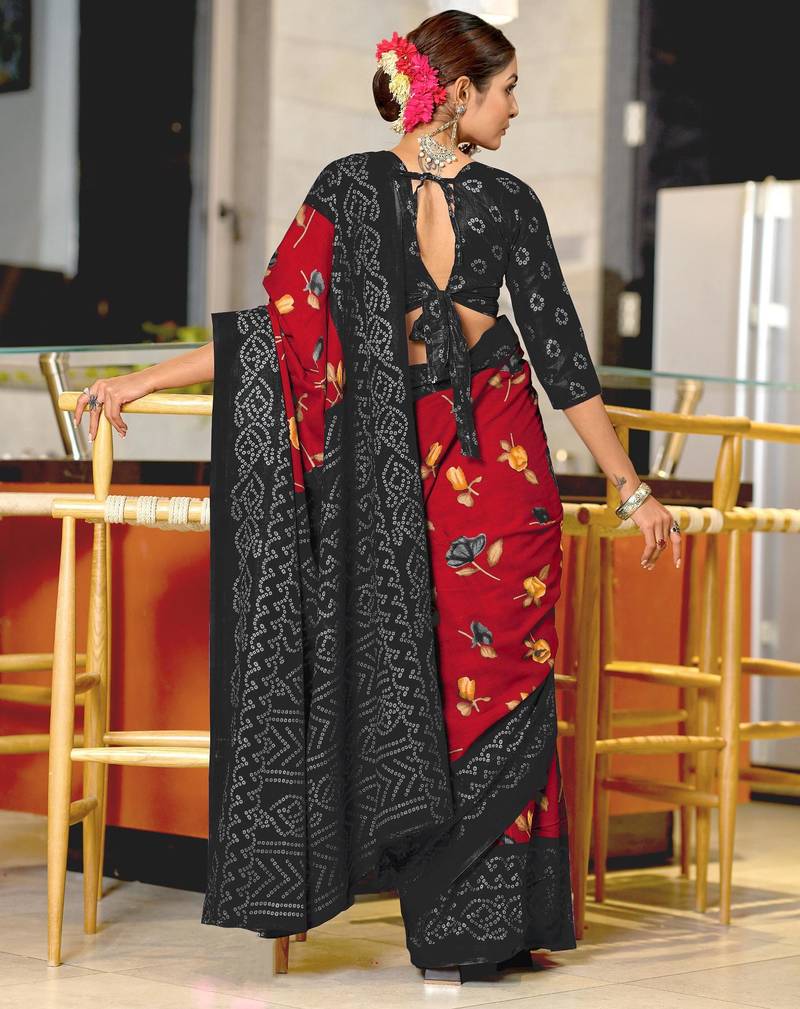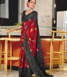 Product Description | Red Mulmul Cotton Printed Fancy Saree With Blouse |