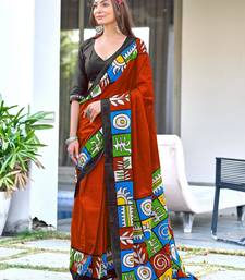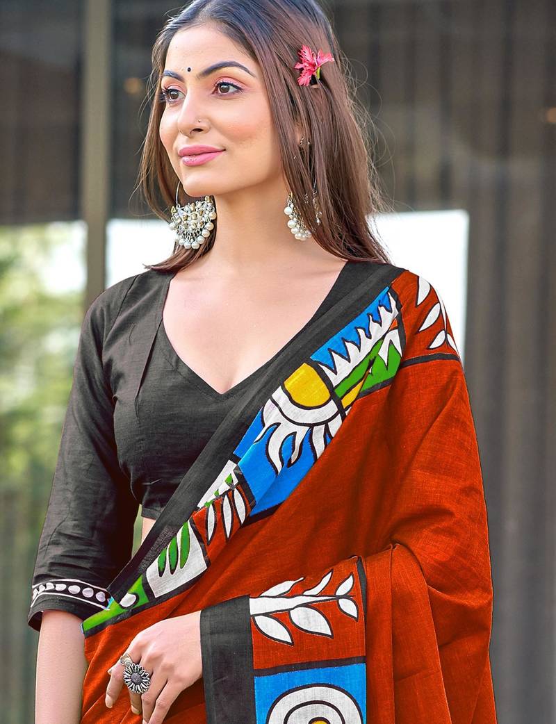Product Description | Red Soft Cotton Printed Fancy Saree With Blouse |