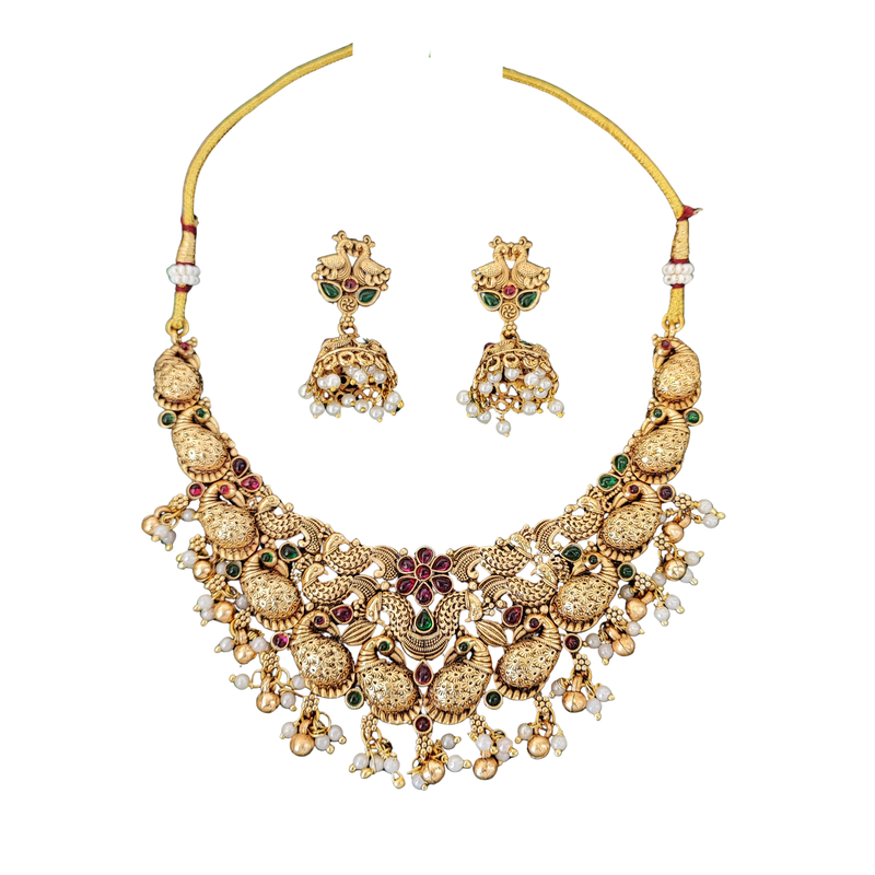 | Product Name | Antique Peacock Temple Necklace Set With Jhumka Earrings | |