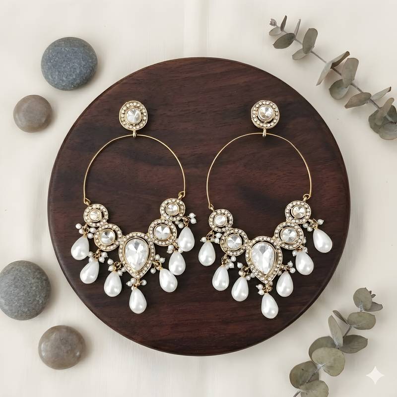 | Product Name | Designer Gold Tone Hoop Earrings With White Pearl Dangling Drops | |
