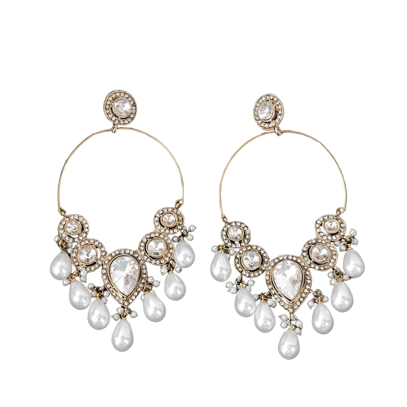 | Product Description | Beautiful Gold Tone Earrings With Teardrop Pearls And Stones, Ideal For Festive Wear And Celebrations |