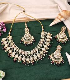 | Product Name | Kundan Bridal Necklace Set With Green And Maroon Beads | Pearl Embellished Earrings & Maang Tikka For Wedding Wear | |