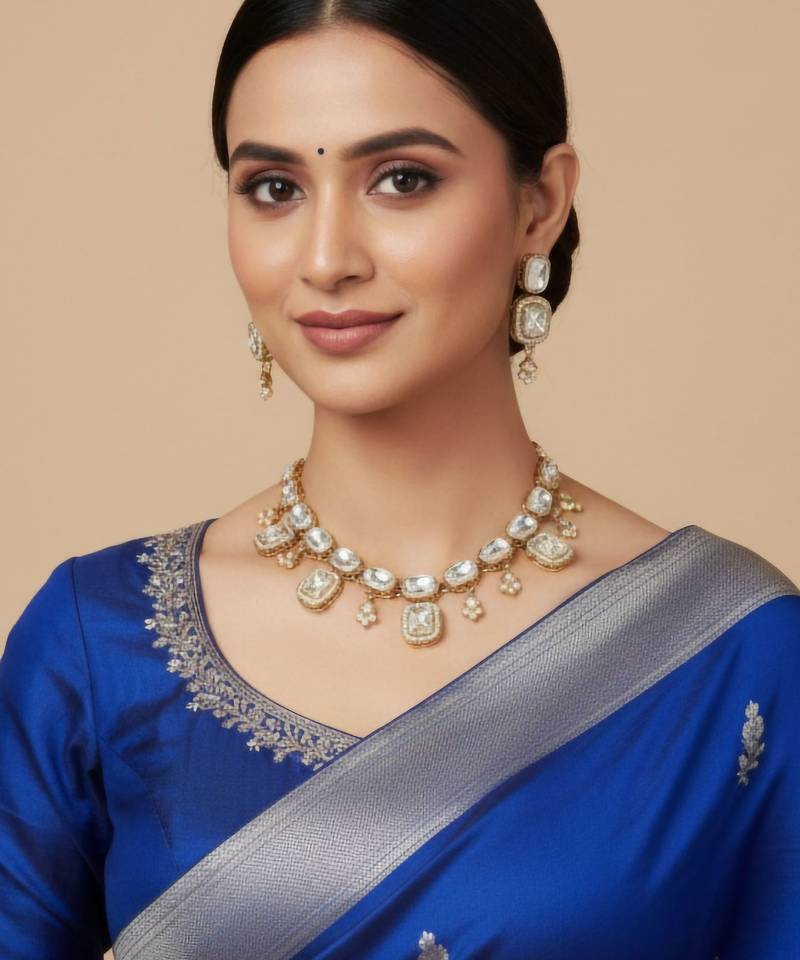 | Product Description | Experience Timeless Royal Elegance With This Kundan Polki Necklace Set With Crystal White Stones, Designed For Women Who Love Heritage Craftsmanship And Luxurious Jewellery. Crafted With Traditional Kundan And Polki Artistry, This Necklace Set Reflects Regal Indian Jewellery Traditions. The Crystal White Stones Add Brilliance, Purity, And Refined Sparkle, Creating A Sophisticated And Graceful Look. The Intricate Craftsmanship And Rich Detailing Make This Set A Perfect Statement Piece For Bridal And Festive Styling. Its Classic Design Ensures It Remains Timeless Across Generations. Ideal For Weddings, Bridal Functions, Receptions, Festive Celebrations, And Grand Occasions, This Women’s Kundan Polki Necklace Set Adds Royal Charm To Any Ethnic Outfit. Pair It With Lehengas, Silk Sarees, And Bridal Wear For A Majestic, Heritage Inspired Look. |