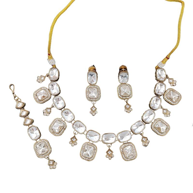 | Product Name | Kundan Polki Necklace Set With Crystal White Stones | |