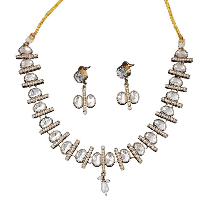 | Product Name | Elegant Kundan Polki Necklace Set With White Stones | |