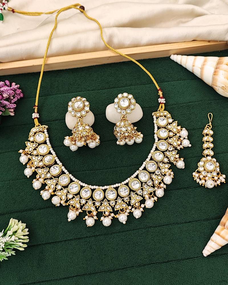 | Product Name | Radiant Pearl And Kundan Necklace Set With Gold Plating – Perfect Jewelry For Bridal, Party, And Festive Wear | |