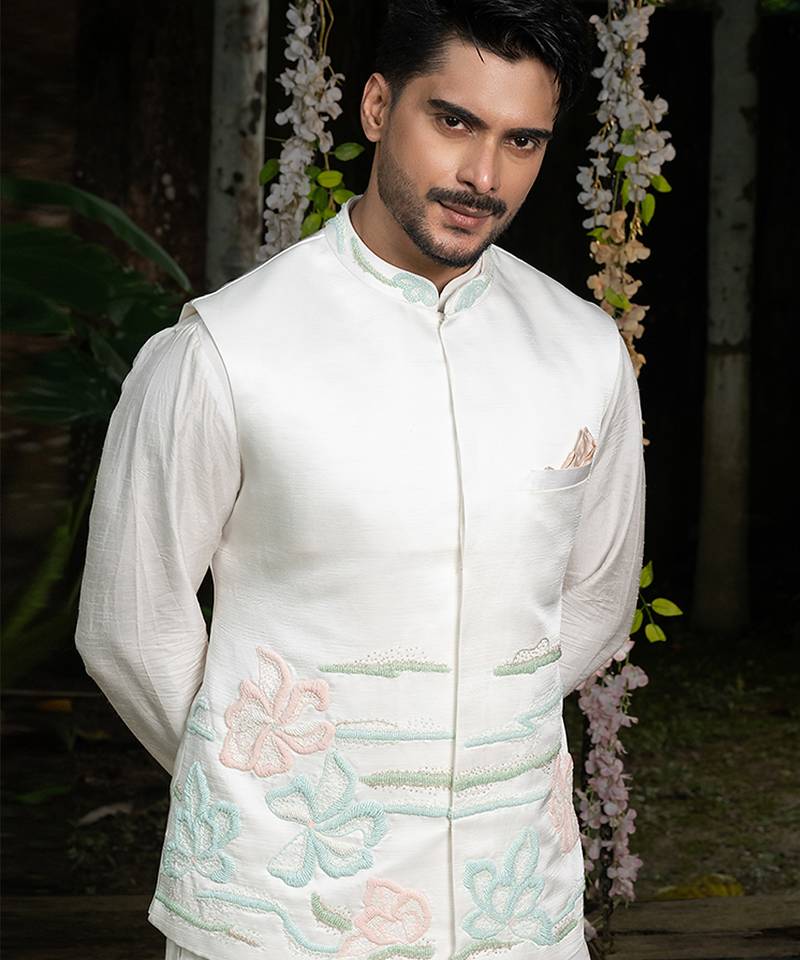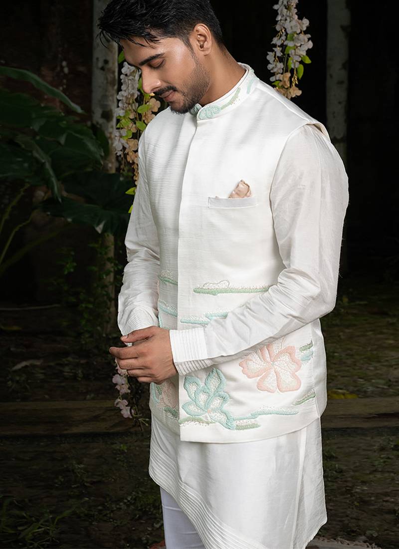 | Product Name | Ivory Embroidered Linen Nehru Jacket | |
