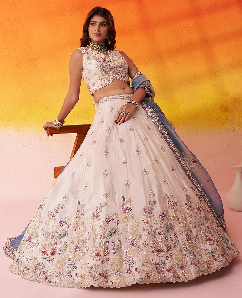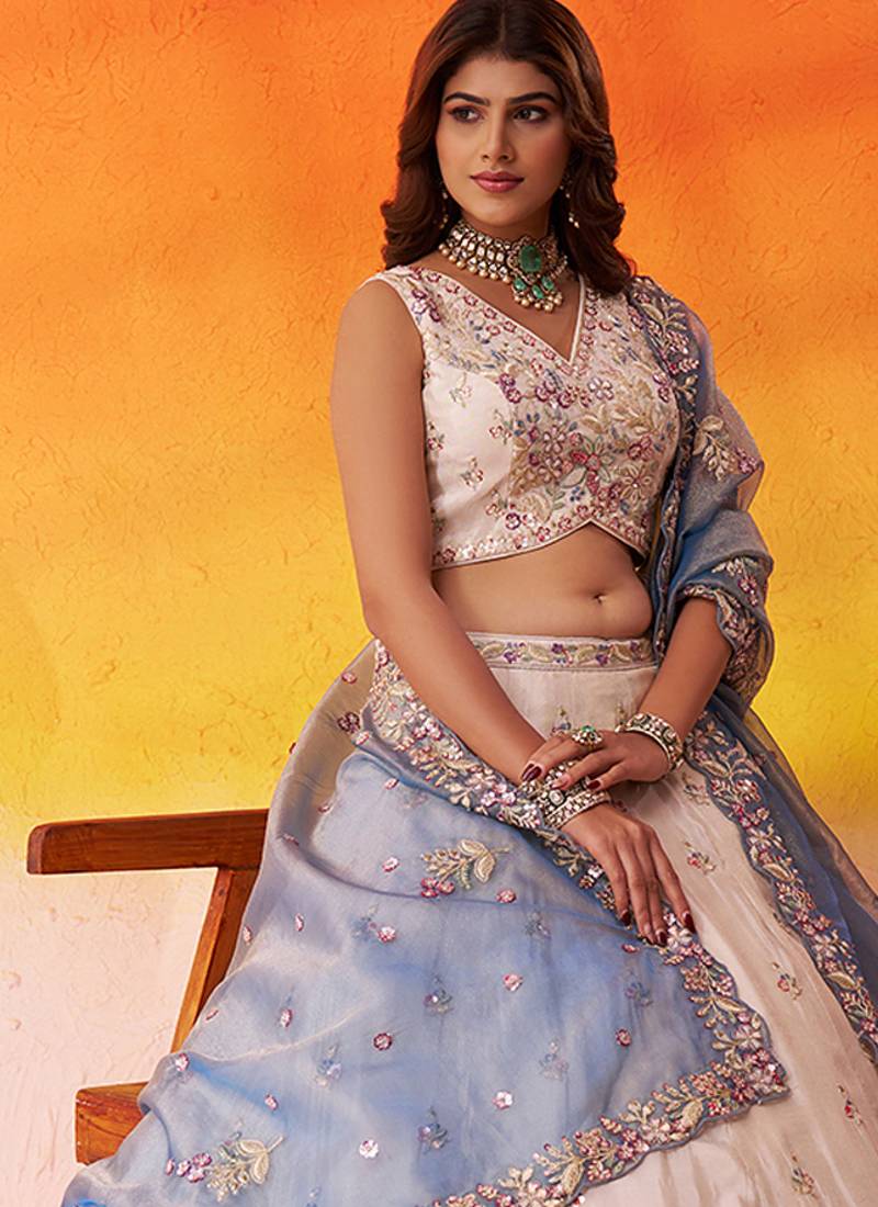 | Product Name | Beige Tissue Fabric Sequins And Thread Embroidery Semi Stitched Lehenga Set With Blouse And Dupatta | |
