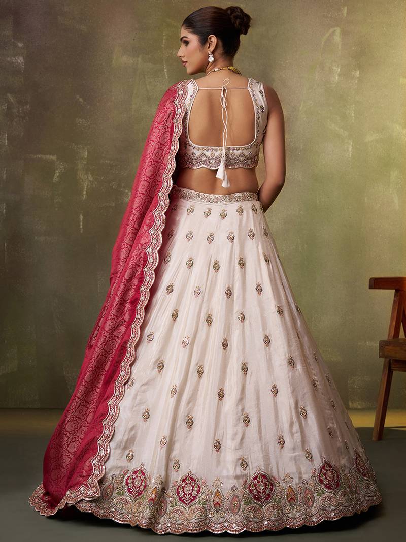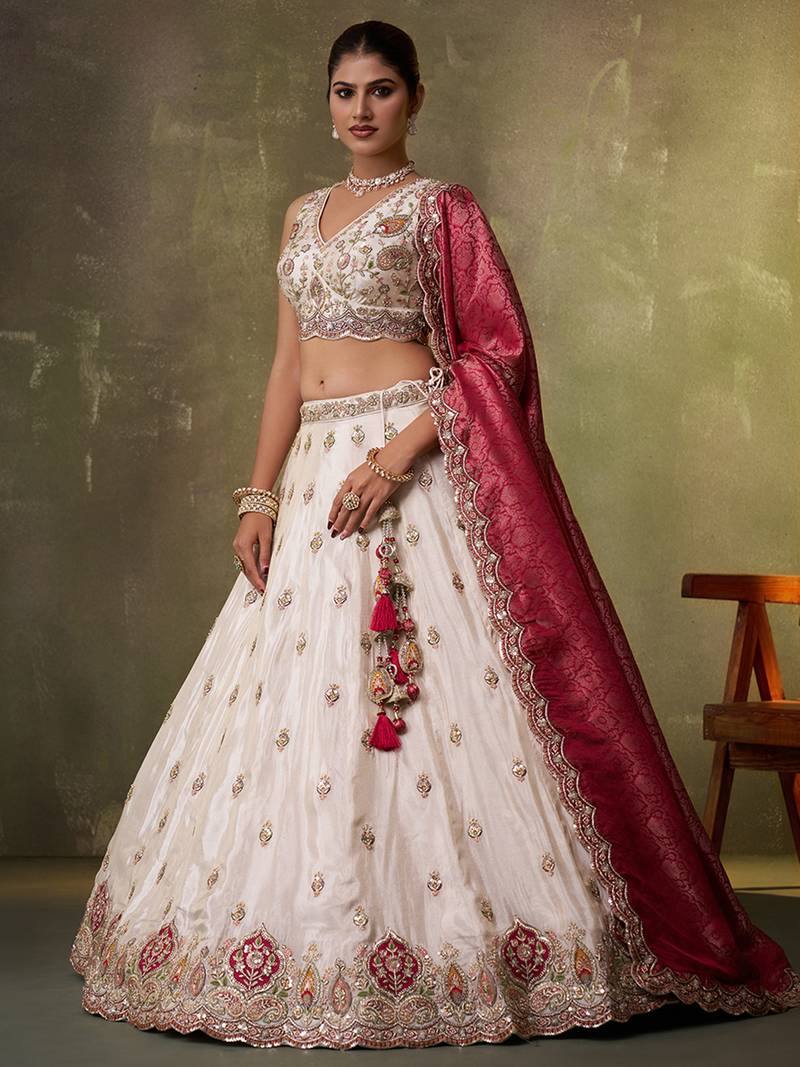 | Product Name | Beige Tissue Fabric Sequins And Thread Embroidery Semi Stitched Lehenga Set With Blouse And Dupatta | |