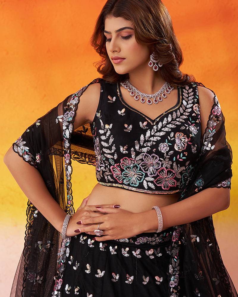 Black net sequins thread & embroidery lehenga choli with dupatta
