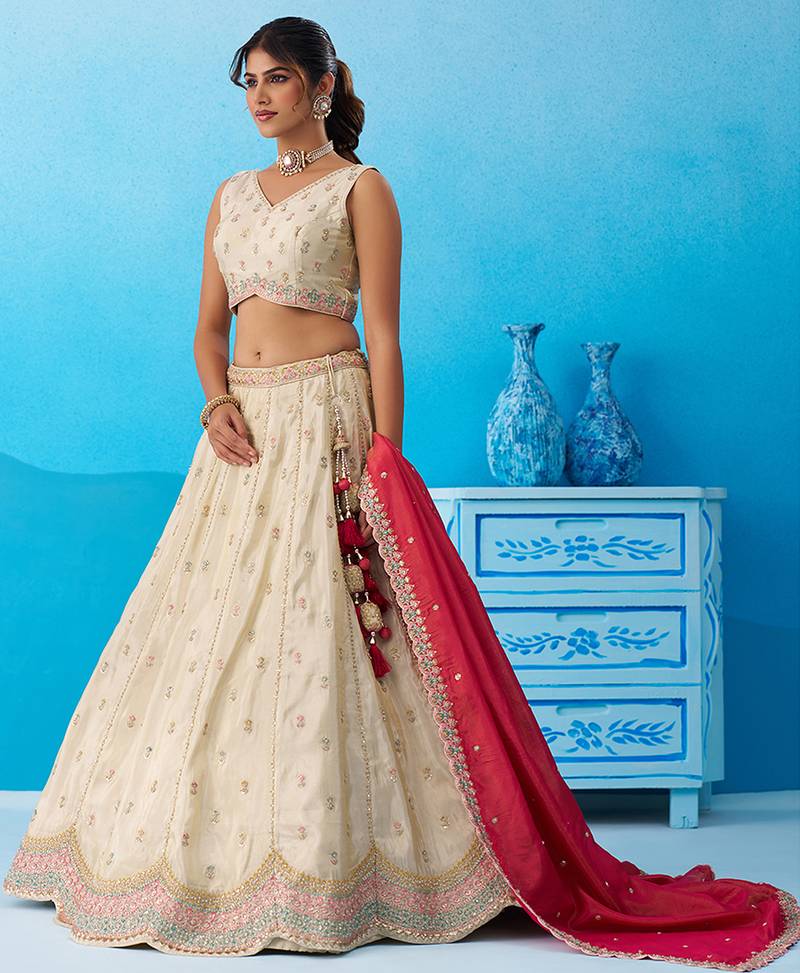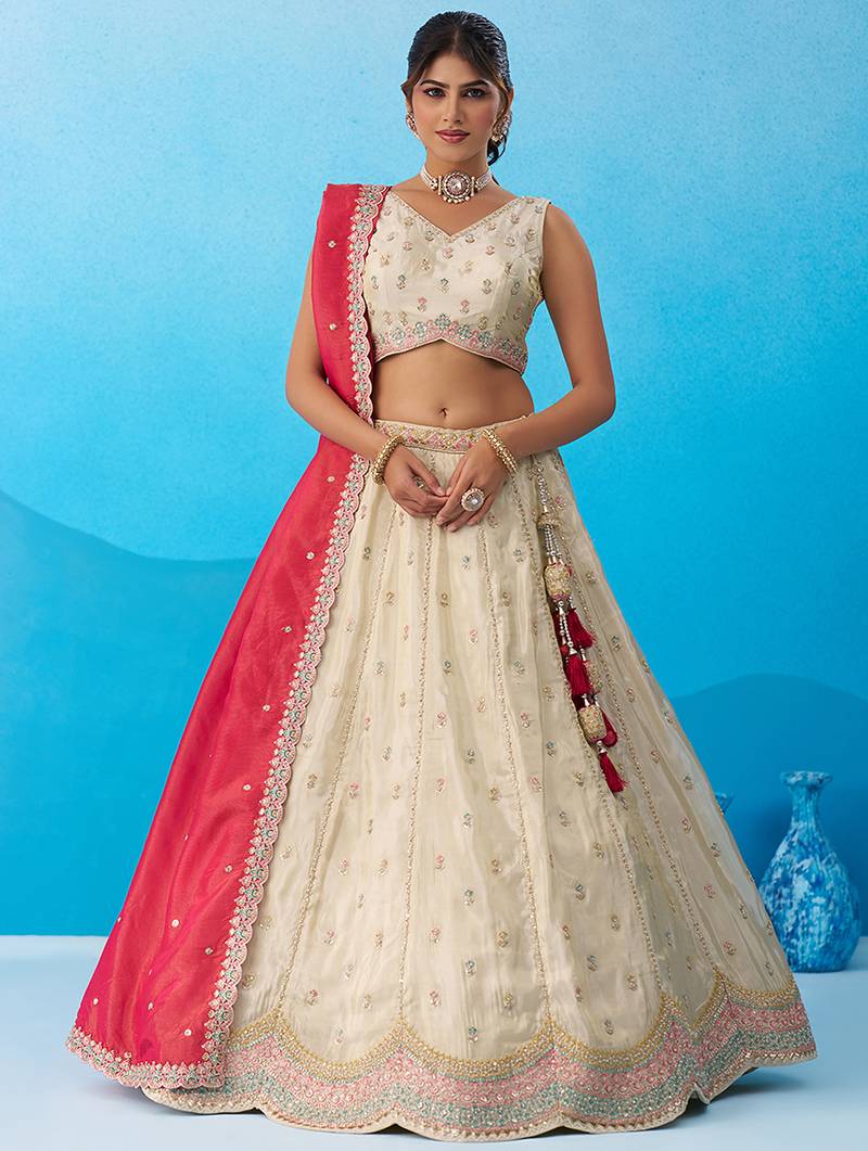 Product Name Cream Tissue Sequins Embroidered Semi Stitched Lehenga & Unstitched Blouse With Dupatta