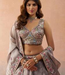 Lavender- tissue sequinned with zarkan embroidered semi-stitched lehenga & unstitched blouse with dupatta