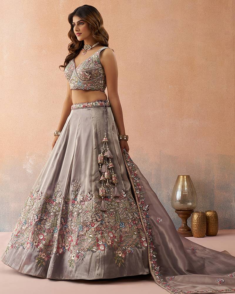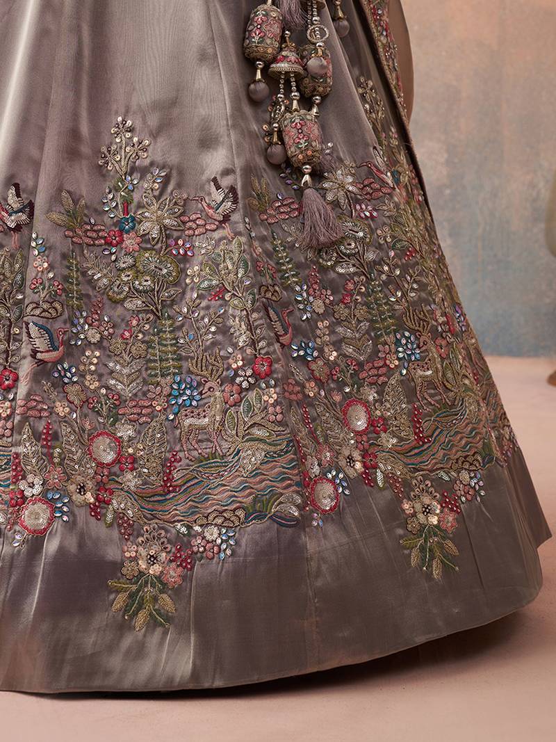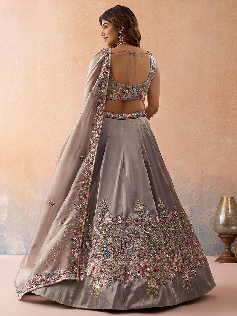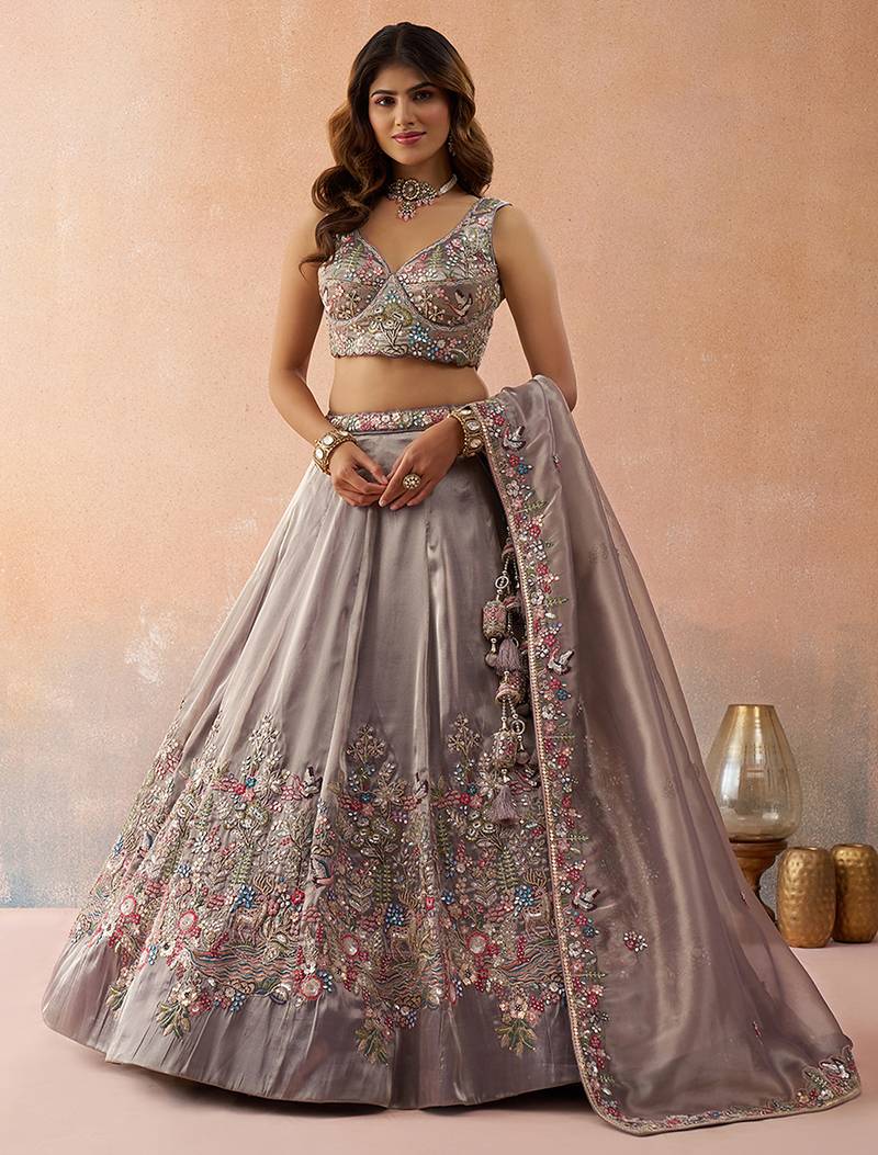 Product Name Lavender Tissue Sequinned With Zarkan Embroidered Semi Stitched Lehenga & Unstitched Blouse With Dupatta