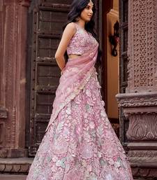 Pink net fabric sequins embroidery semi stitched lehenga & unstitched blouse with dupatta