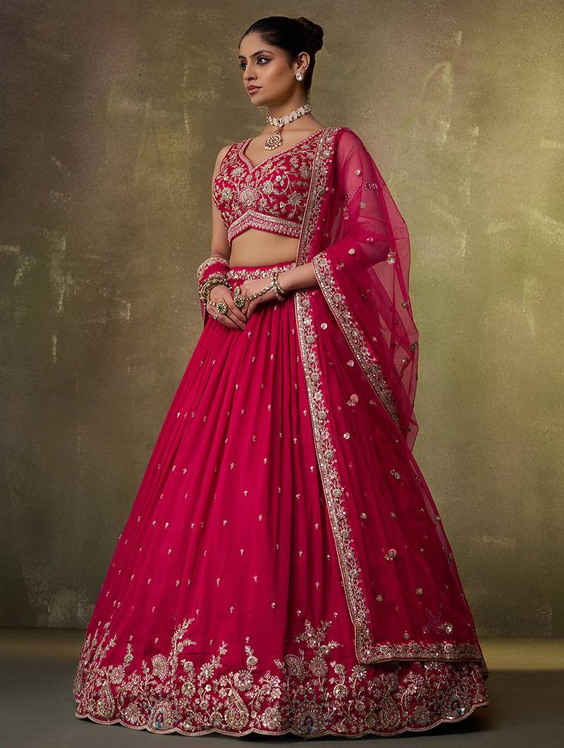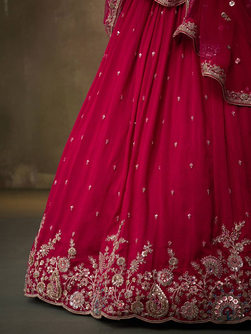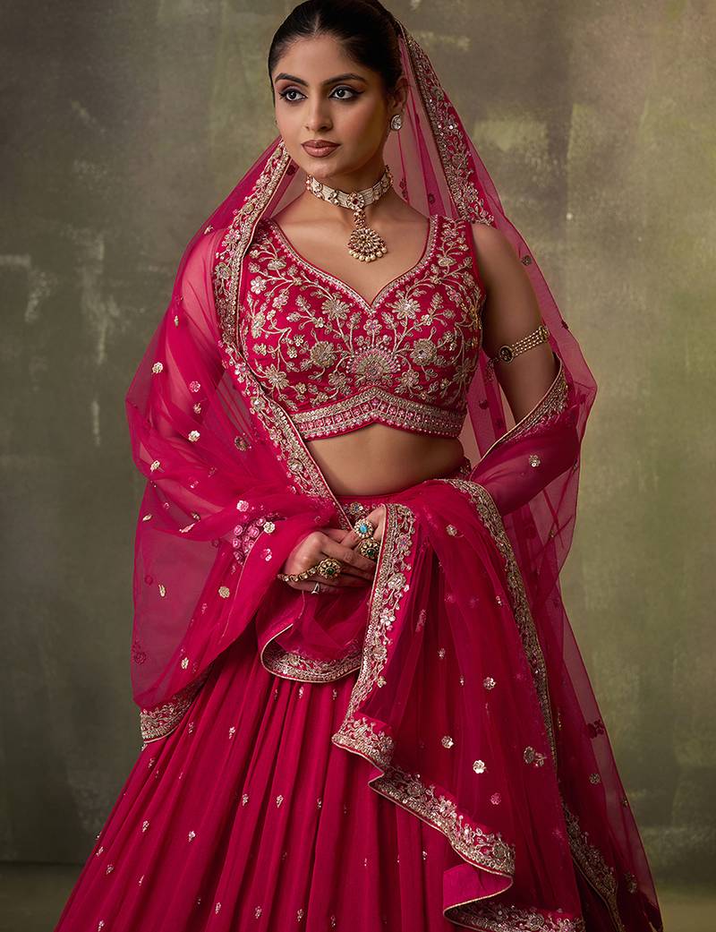 | Product Description | • Lehenga: Made Of Premium Quality Red Georgette Fabric Full Flair Semi Stitched Pleated Lehenga With Moti, Sequins And Cording Work Has A Thread Embroidery Work. Has A Thread Work Border On The Hemline.
