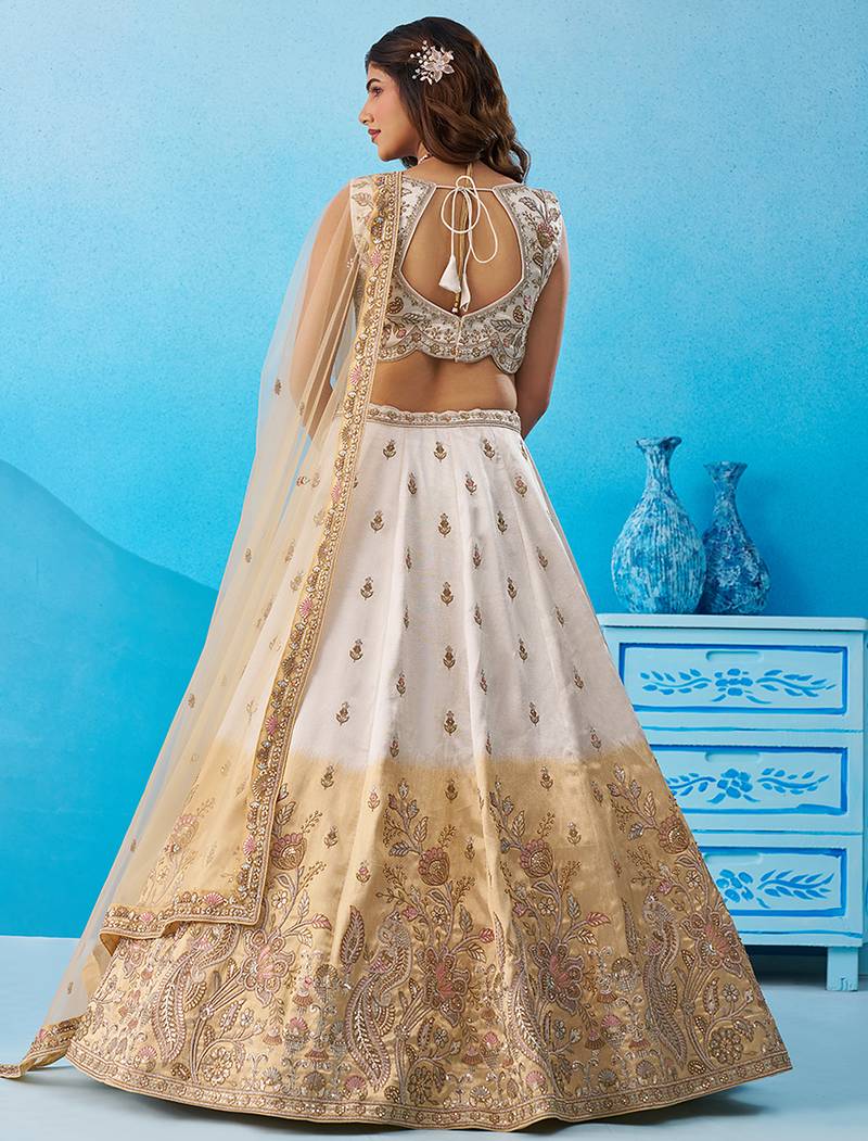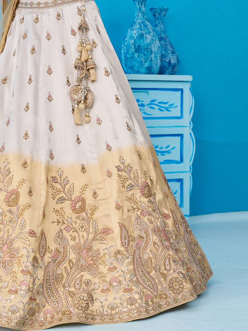 Tissue beads & sequins embroidered omber beige and cream semi-stitched lehenga choli & dupatta