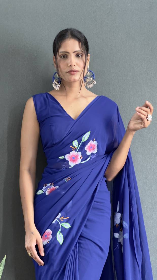 | Product Name | Blue Designer Hand Printed Faux Georgette Saree With Blouse Piece | |