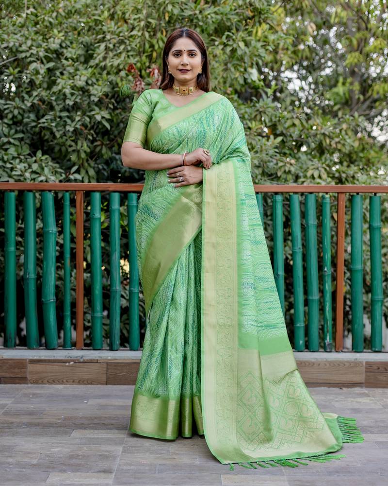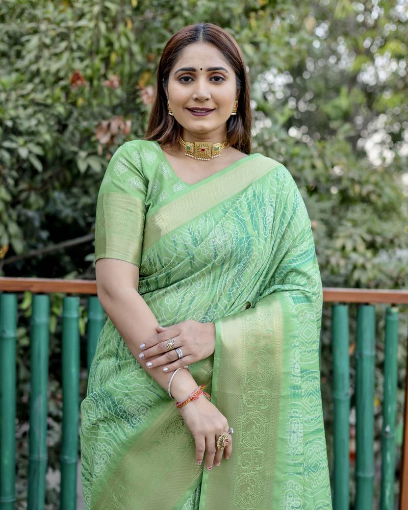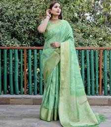 Green wevon pallu border designer,digital printed dola silk saree with blouse piece