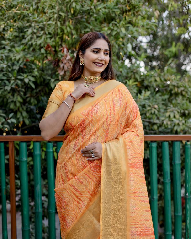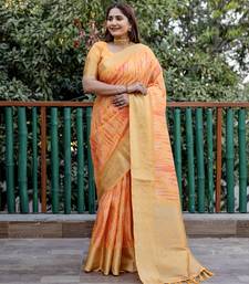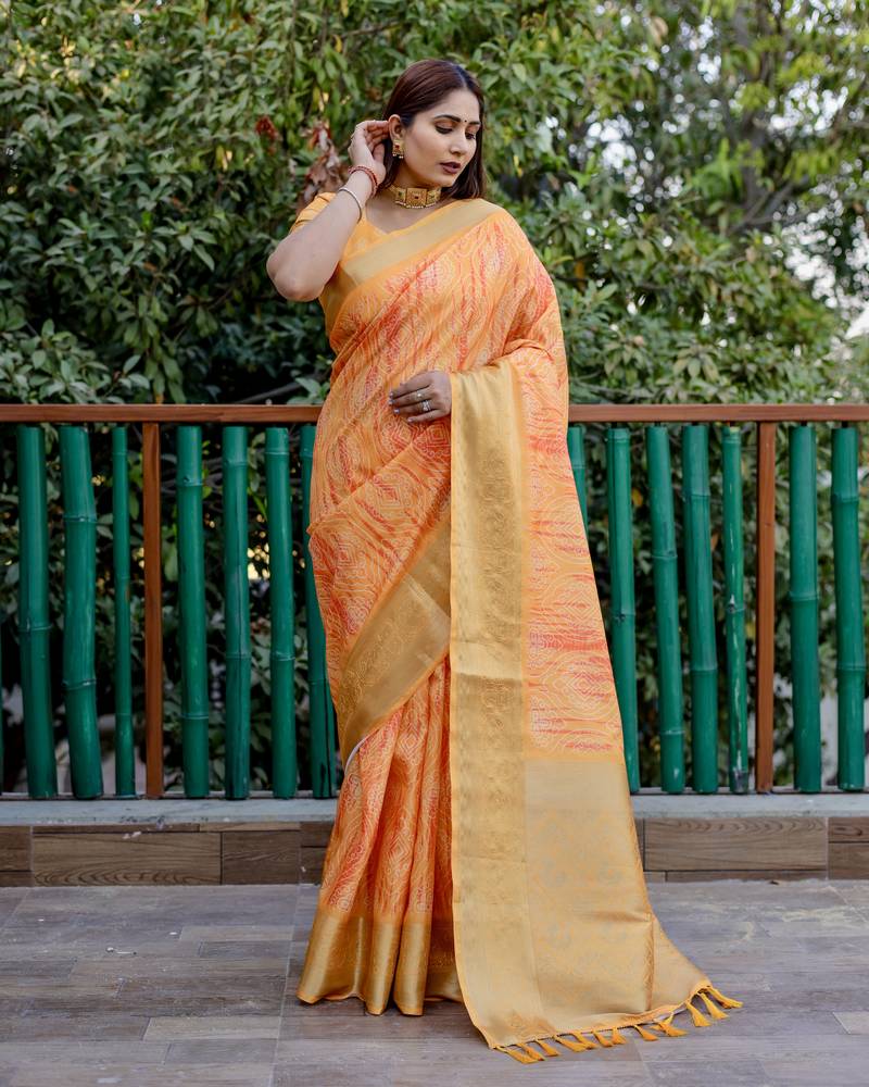 Organge wevon pallu border designer,digital printed dola silk saree with blouse piece