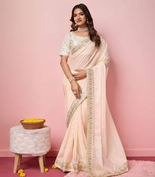 Peach embroidery work border,blouse organza saree with blouse piece