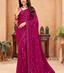Pink blooming color,heavy sequance embroidery work faux georgette saree with blouse piece