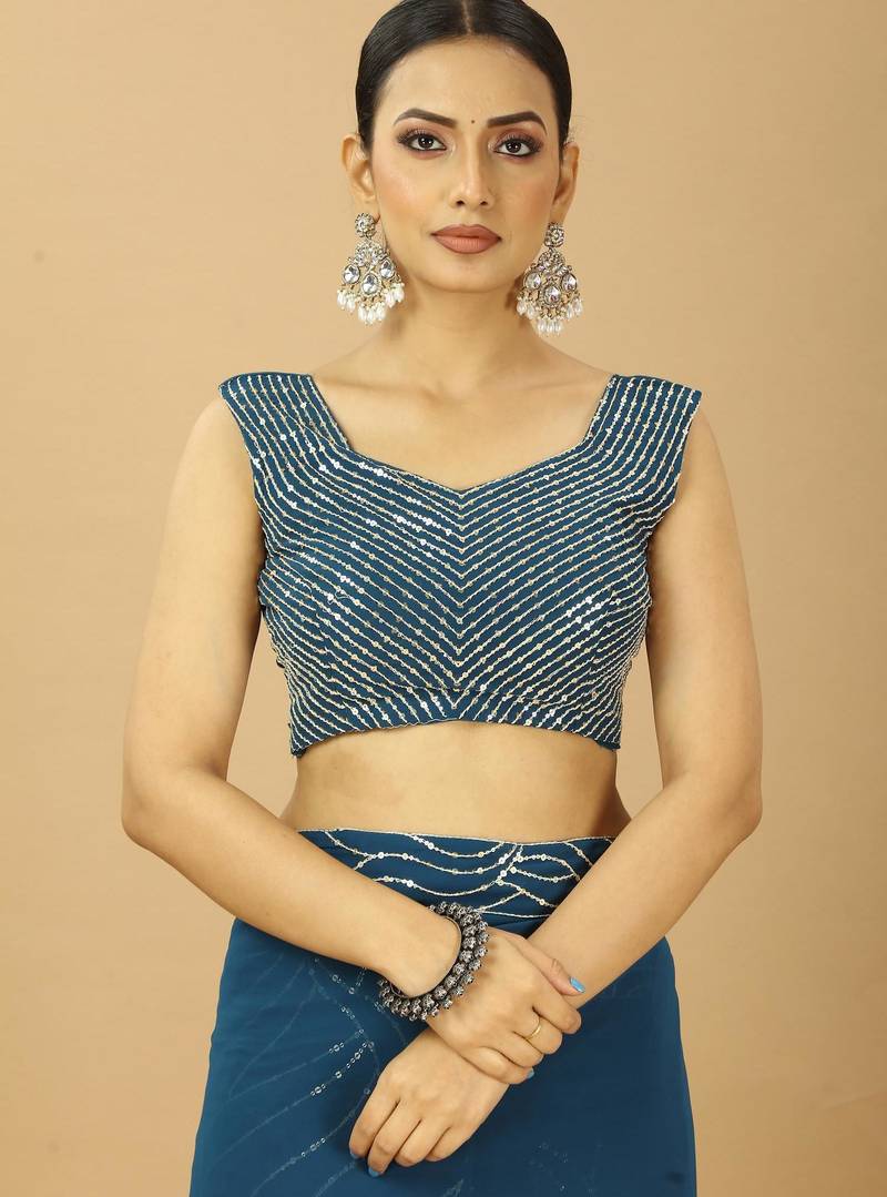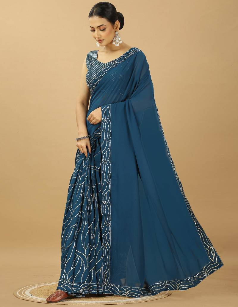 Attractive georgette sequince embroidery ready to wear saree with unstitched sequence blouse