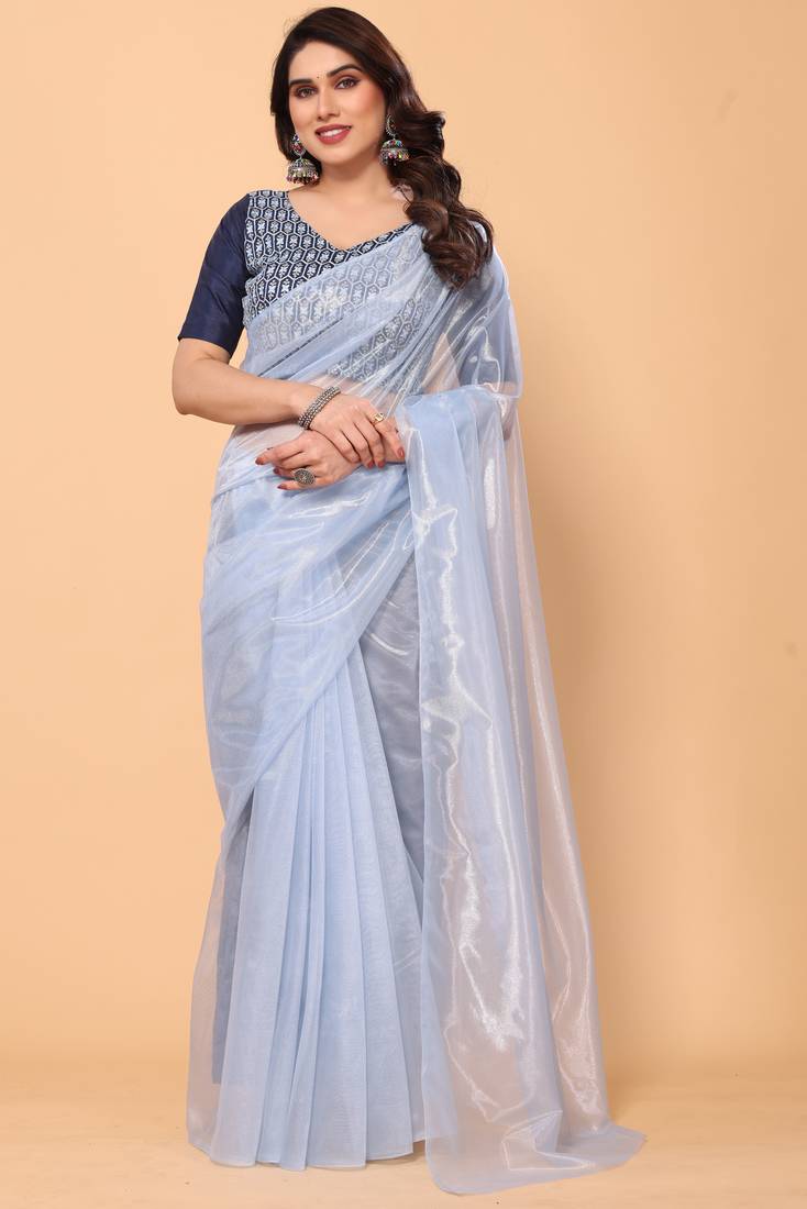 | Product Description | ** Fabric ** : Saree Twill Net(Colour Light Blue) || Blouse Silk (Colour Nevy Blue) ** Size ** : Saree 5.5 Meter || Blouse 1 Meter ** Packege Contain ** : 1 Saree || 1 Unstitched Blouse Piece** Detail ** : Twill Net Party Wear Saree || Fully Embroidery Blouse || Plain Saree ** Why Purchase? ** : Branded Product || Soft Finished || Comfortable To Wear || Best Quality In Best Price |